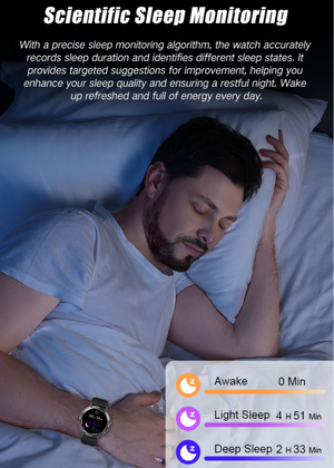 ✔️ Advanced Sleep Tracking: Monitor light, deep, and REM sleep phases with precision.